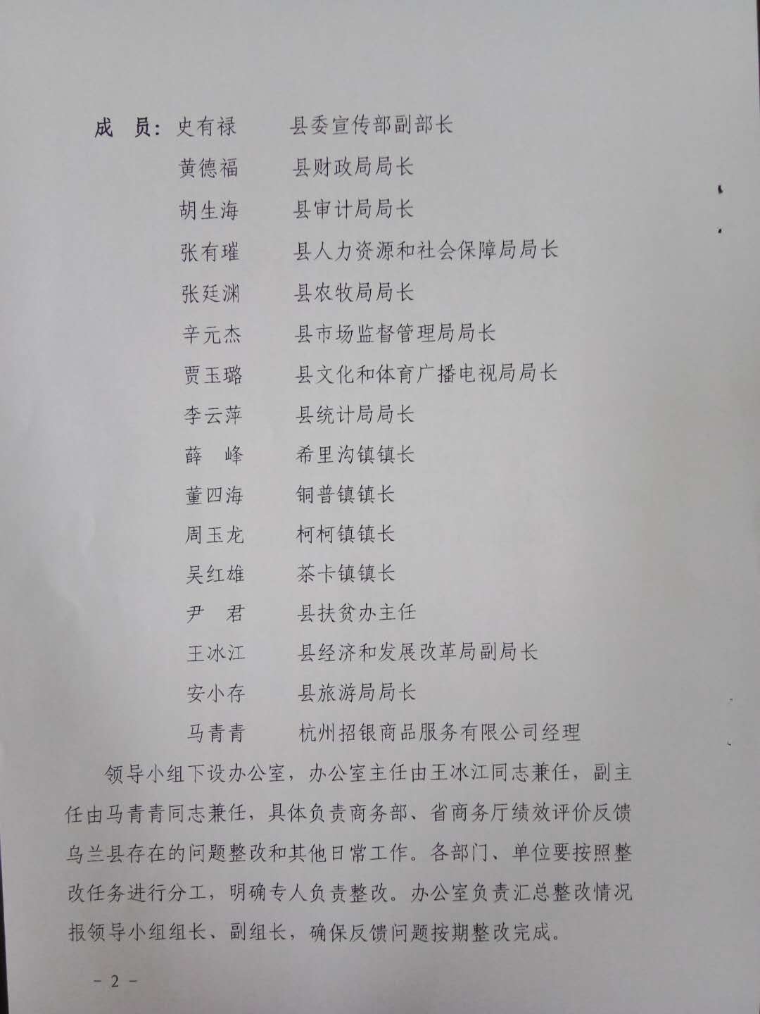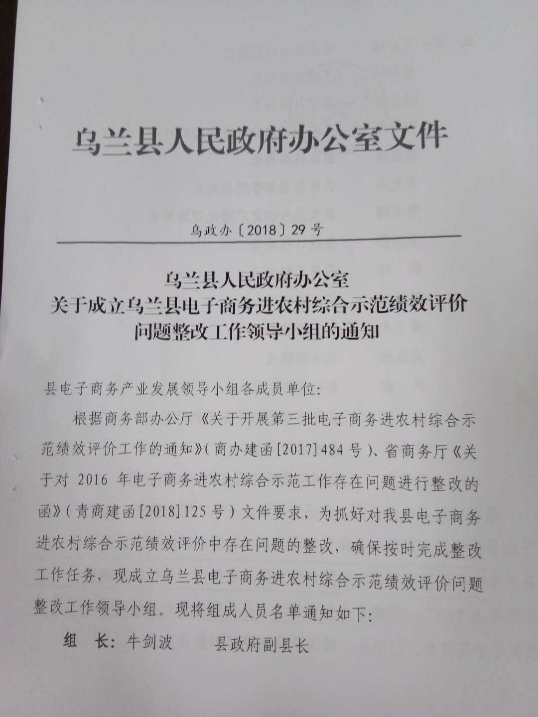 关于成立乌兰县电子商务进农村综合示范绩效评价问题整改工作领导小组的通知