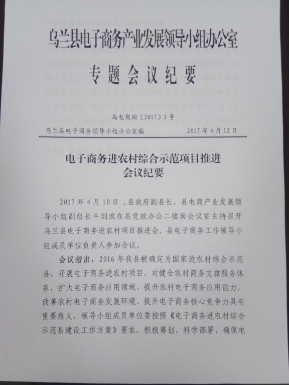 电子商务进农村综合示范县建设工作方案(修盖稿会议纪要)