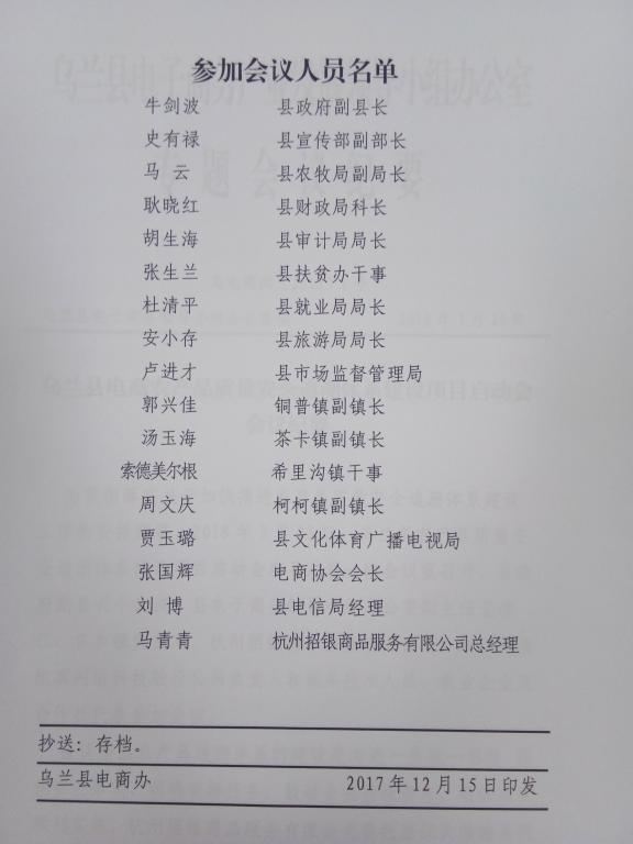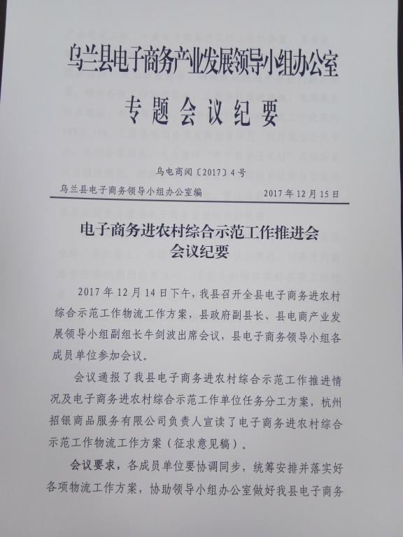 乌兰县电商农产品质量安全追溯体系建设项目启动会会议纪要